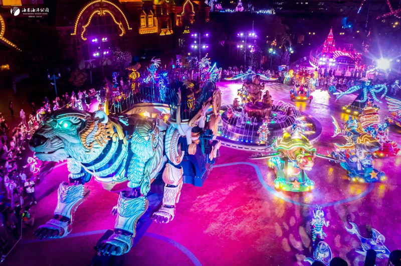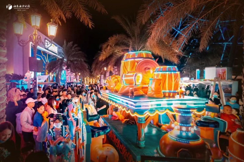 “蓝星战队·海陆机甲大巡游”现场 除此之外,在其他夜游场景中,海昌也注重让产品从单一化娱乐产品向综合型、多元化业务生态转变,以九大玩法让游客更有互动娱乐感。