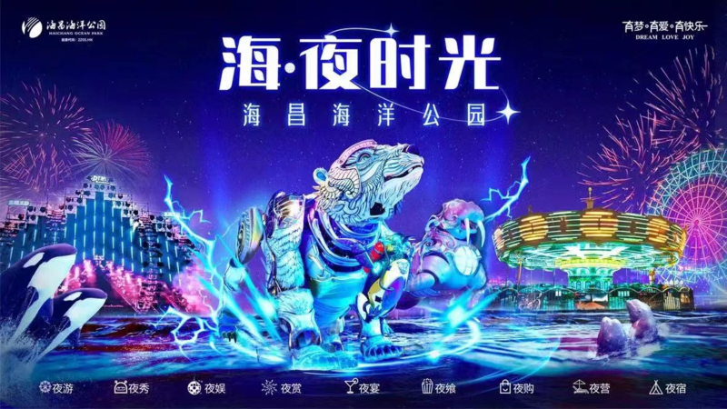 “海昌夜时光2.0”九大升级玩法 夜游:嗨翻全家人的仲夏之夜 海昌海洋公园一键切入超长“待机”模式:飞扬在深邃夜空的热气球之旅、海上摩天轮、数万只“鲸”奇海洋动物、覆盖了从“惊险刺激”到“全家出动”的几十款人气游乐设备,纷纷召唤你嗨翻仲夏之夜。 夜秀:沉浸式感知国潮科技秀 火爆全网的新晋网红,中国智造的十余“头”机甲巨兽天团,呈现原创互动式“蓝星战队·海陆机甲大巡游”,带你沉浸式感知国潮高科技夜秀的丰盛内涵。 夜娱:加入声光电的狂欢派对 四层楼高的赛罗奥特曼巨型雕像,与知名MC和DJ,共同奏响夏夜电音狂欢;十万山城市民汇聚一堂,与明星在音乐节“集体约会”。从今往后,听音乐何必一定去演唱会?
