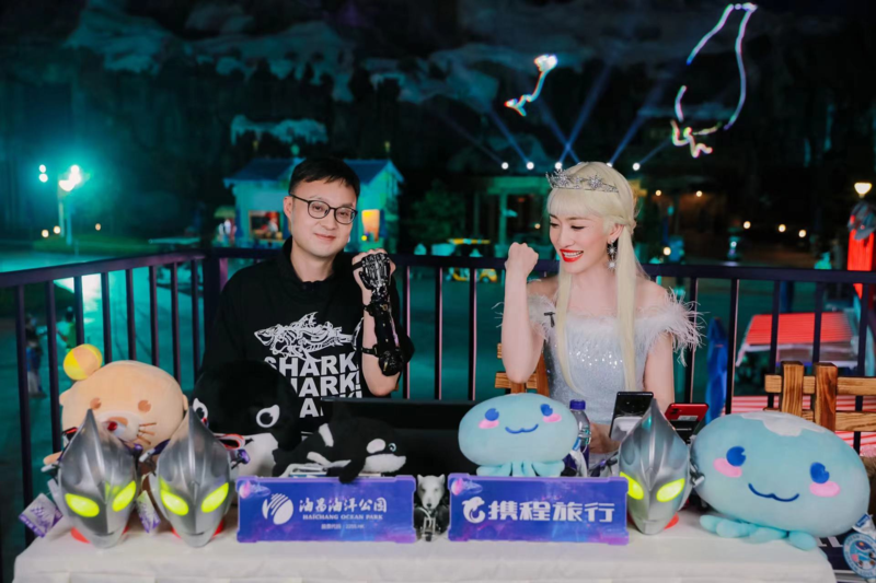 “从‘重内容’到‘重体验’,游客夜游需求正在转变。‘夜经济2.0’的9大升级玩法将为游客带来‘更年轻·更互动·更娱乐·更沉浸’的夜游体验”。海昌海洋公园执行总裁张建斌表示。 8月12日晚的携程BOSS直播海昌海洋公园专场,为“海昌·夜时光2.0”产品生态体系拉开序幕,并且奉上了国内首场机甲主题旅游直播,吸引超320万热度。 在直播中,张建斌以“基地机甲指挥官”coser的身份,与装扮成“蓝星女王·海灵”的携程集团副总裁孙天旭一道,为用户种草了机甲巡游、美人鱼餐厅、奥特曼主题娱乐区、电音节、海底世界夜宿等花式夜游体验玩法,与粉丝一同开启沉浸式机甲夜游狂欢。